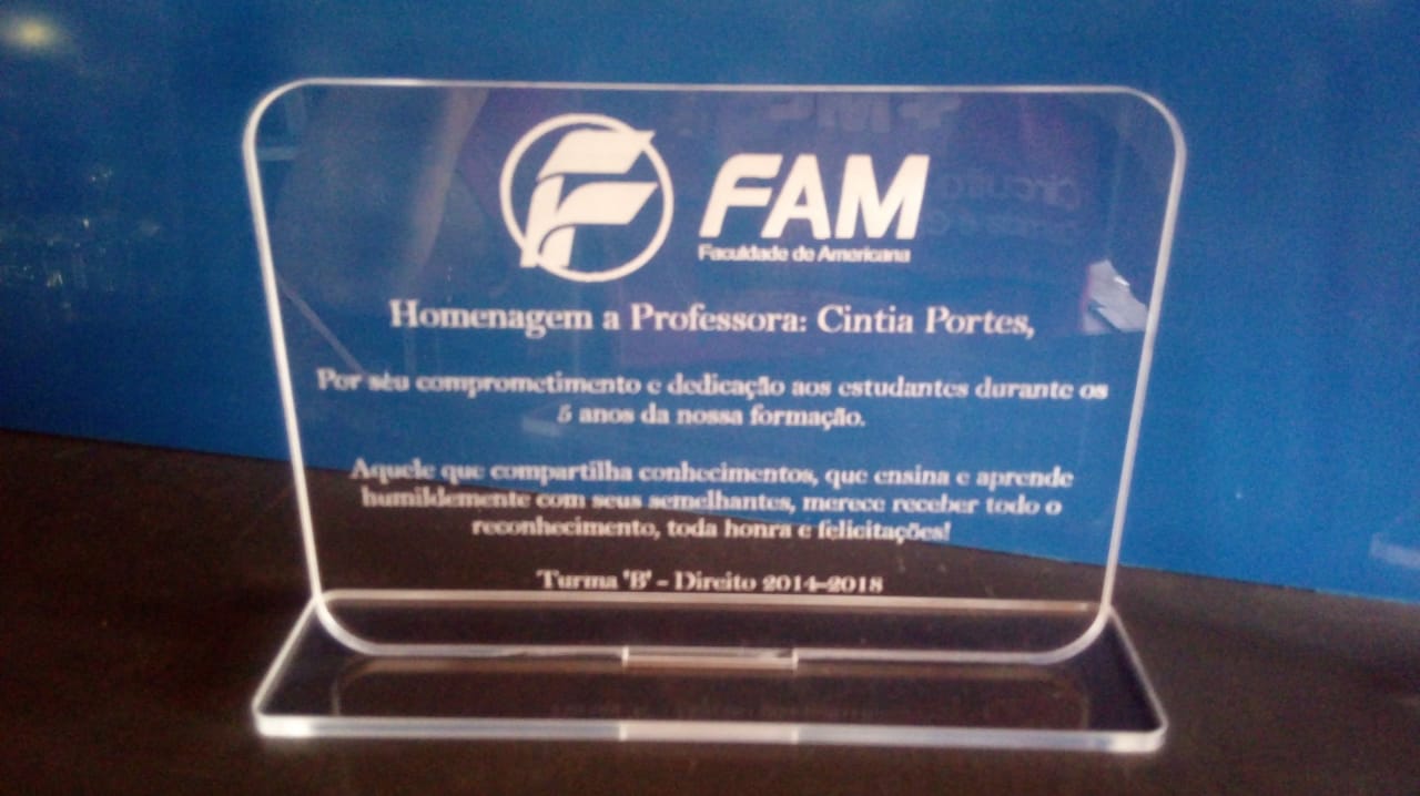 Trabalhamos com a fabricação de premiações personalizadas, nossos troféus são feitos de acrílico, MDF ou PLA. Realizamos corte a laser, gravação a laser, impressão 3D e adesivação.